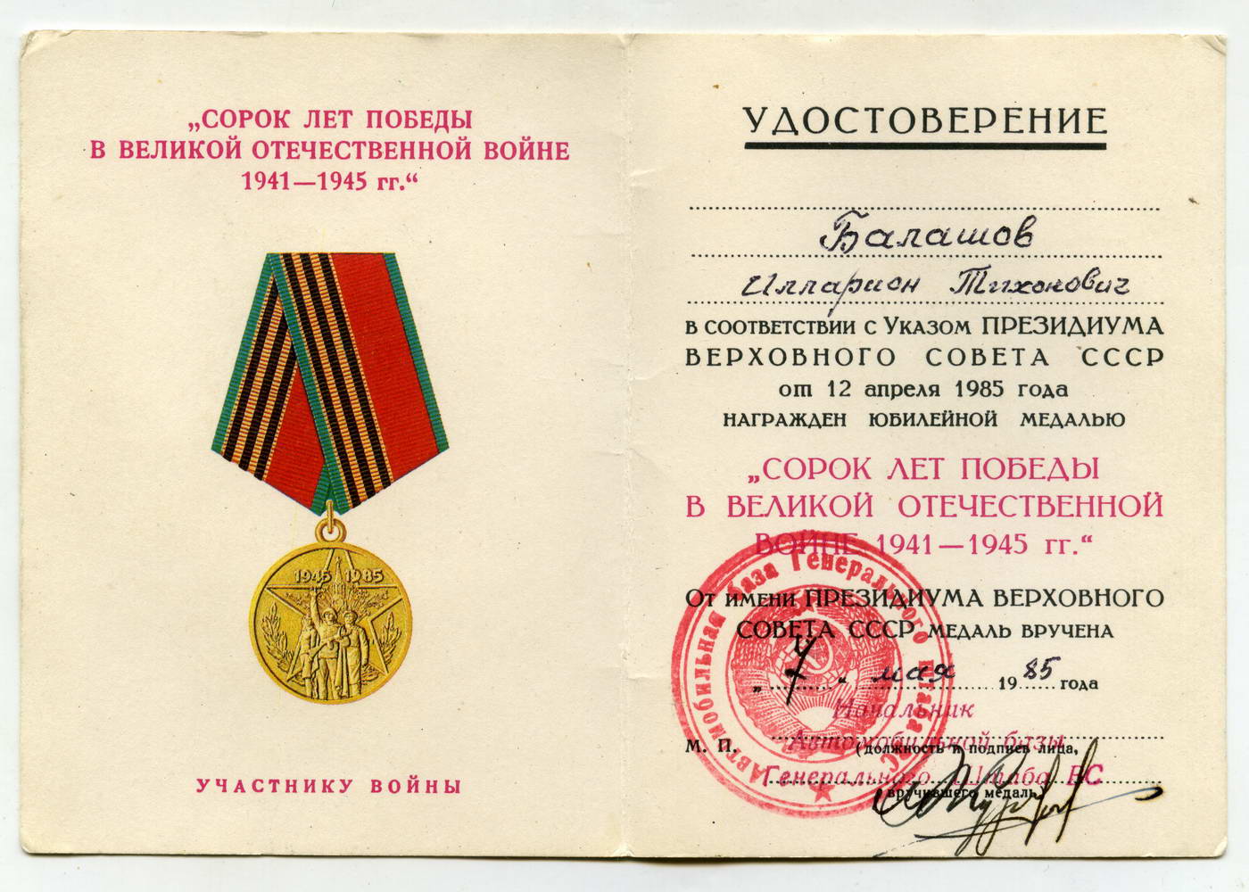 Документ с печатью Автомобильной базы Генерального штаба ВС.