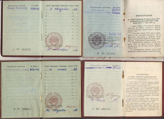 Орденские книжки, удостоверения к медалям, Грамоты, удостоверения личности, извещения, справки и другие документы, литература