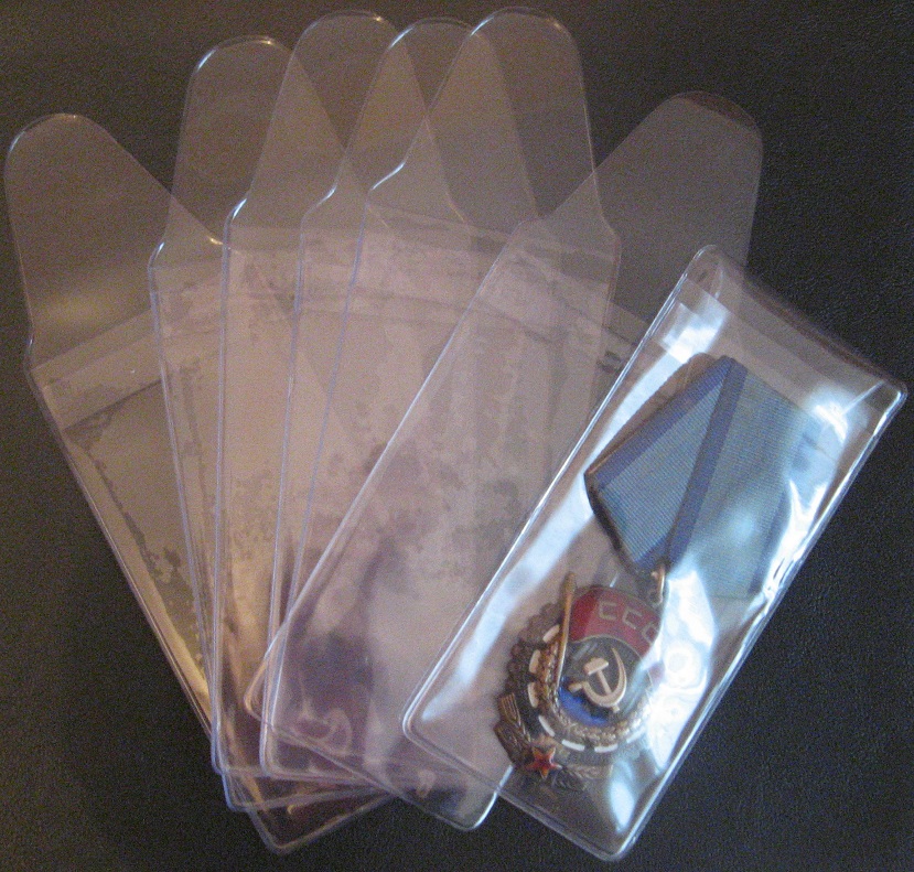 Удобная система хранения наград: конверт из плотного прозрачного ПВХ предохраняет знаки от повреждений и загрязнений, сохраняя отличную видимость предмета. Возможно использование в специализированных альбомных листах.