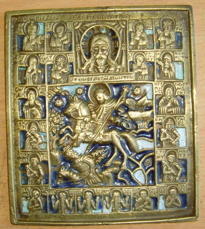 Медная икона Чудо Дмитрия Солунского (эмаль)