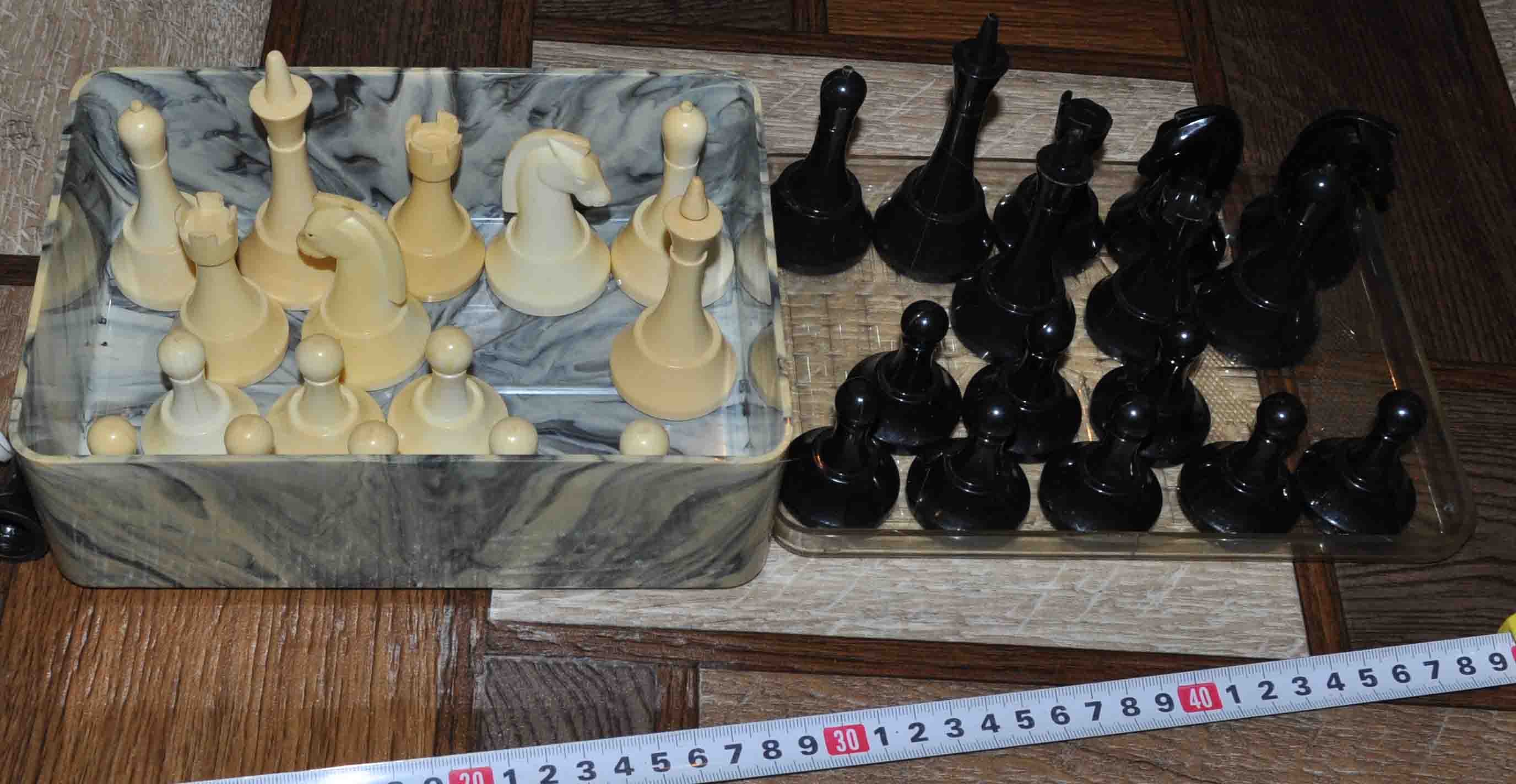 Все шахматы на месте Из косяков только на одной ладье сверху сколоно два фрагмента фигурки.