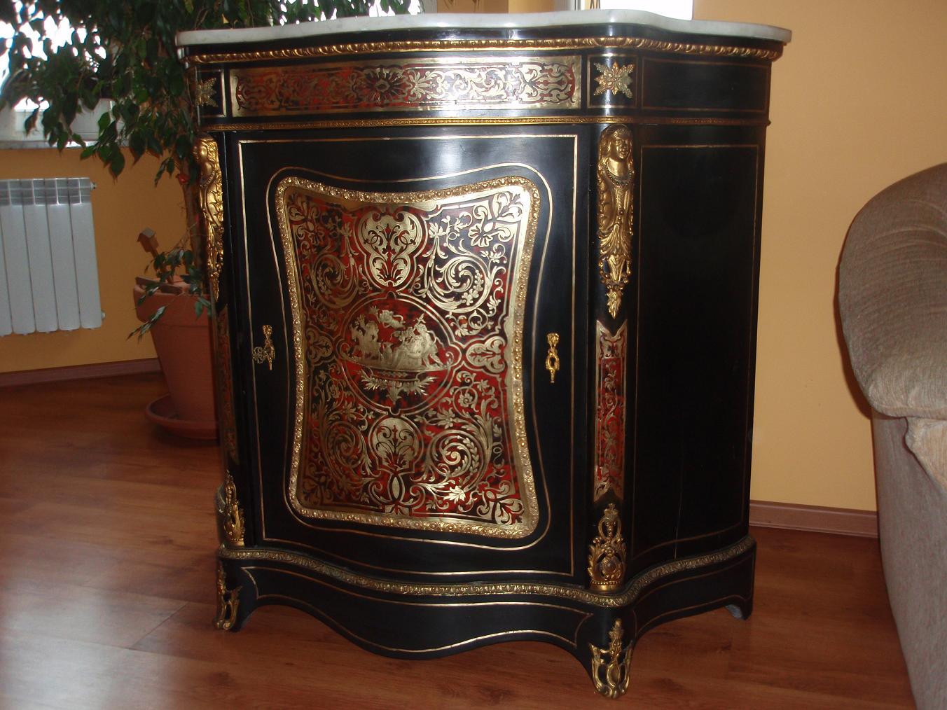 Продам комод Буль. Размеры 115смх106х41см.Состояние хорошее. Имеется маленькая трещина на левом боку. Маркетри не отстает, держится крепко, все латуни и бронзы на месте. Цена 3250долларов.