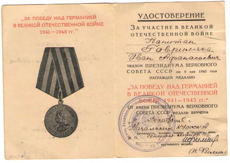 ЗПНГ на капитана Гавриляку И.А. Подпись начальника курсов усовершенствования офицерского состава связи КА генерал-майора Филина.