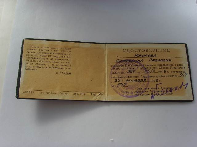 ОТЛИЧНИК ГИДРОМЕТСЛУЖБЫ СССР №547 с док. и короб. ОТЛ. СОСТ.