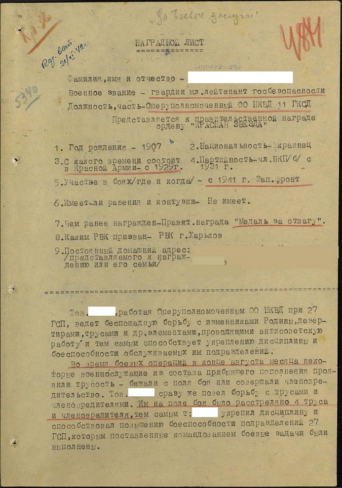 Редчайший Наградной на КЗ - 3 стр "подвигов". От расстрела своих красноармейцев, до ловли диверсантов и "чуждых элементов".
