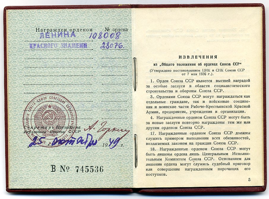 Орден и документ в ЛЮКСЕ.