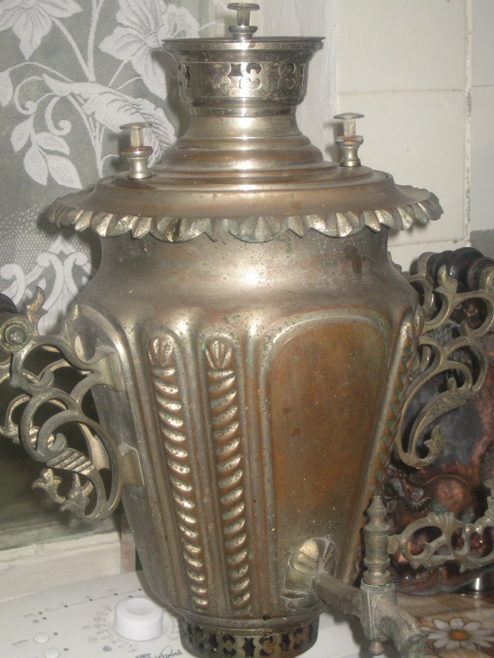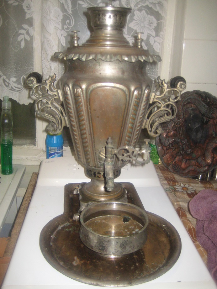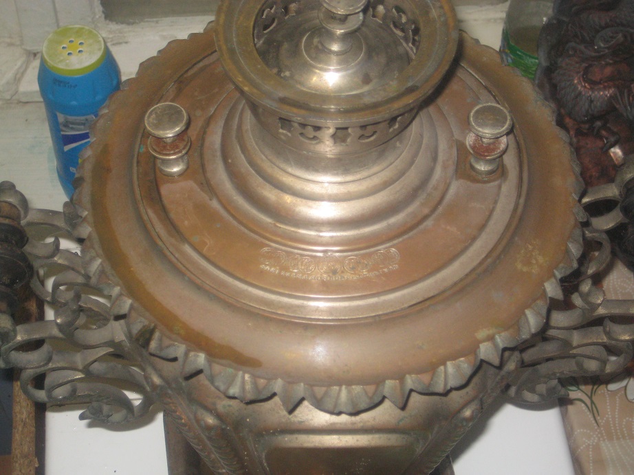 Самовар бокалом византийский, две витые колонки, ручки в стиле рококо. высота полная 52см. Состояние изумительное, без ударов и вмятин, очень тяжелый.