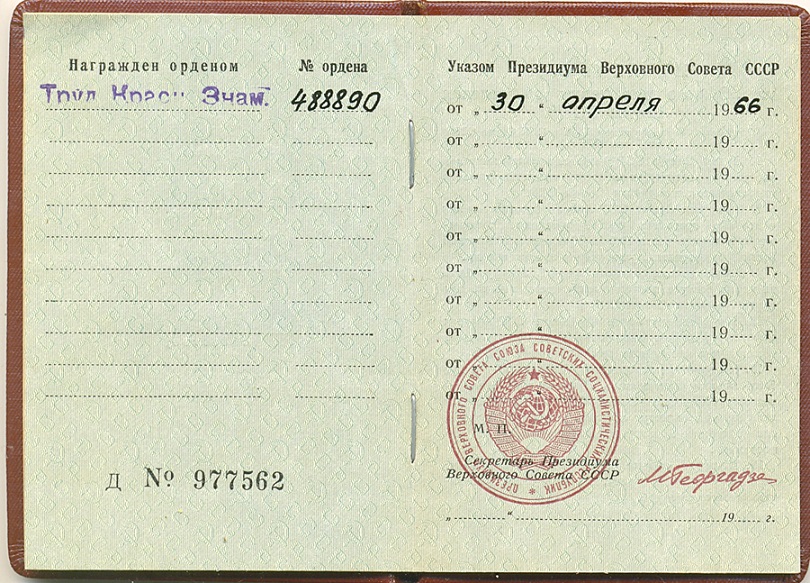 Три Трудовых Отличия на одного.