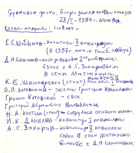 В первом ряду : Е.С.Шейдеман -Нач.2-го Кавкорпуса ( в 1937 году нач .Тамбовского Кавал.училища )