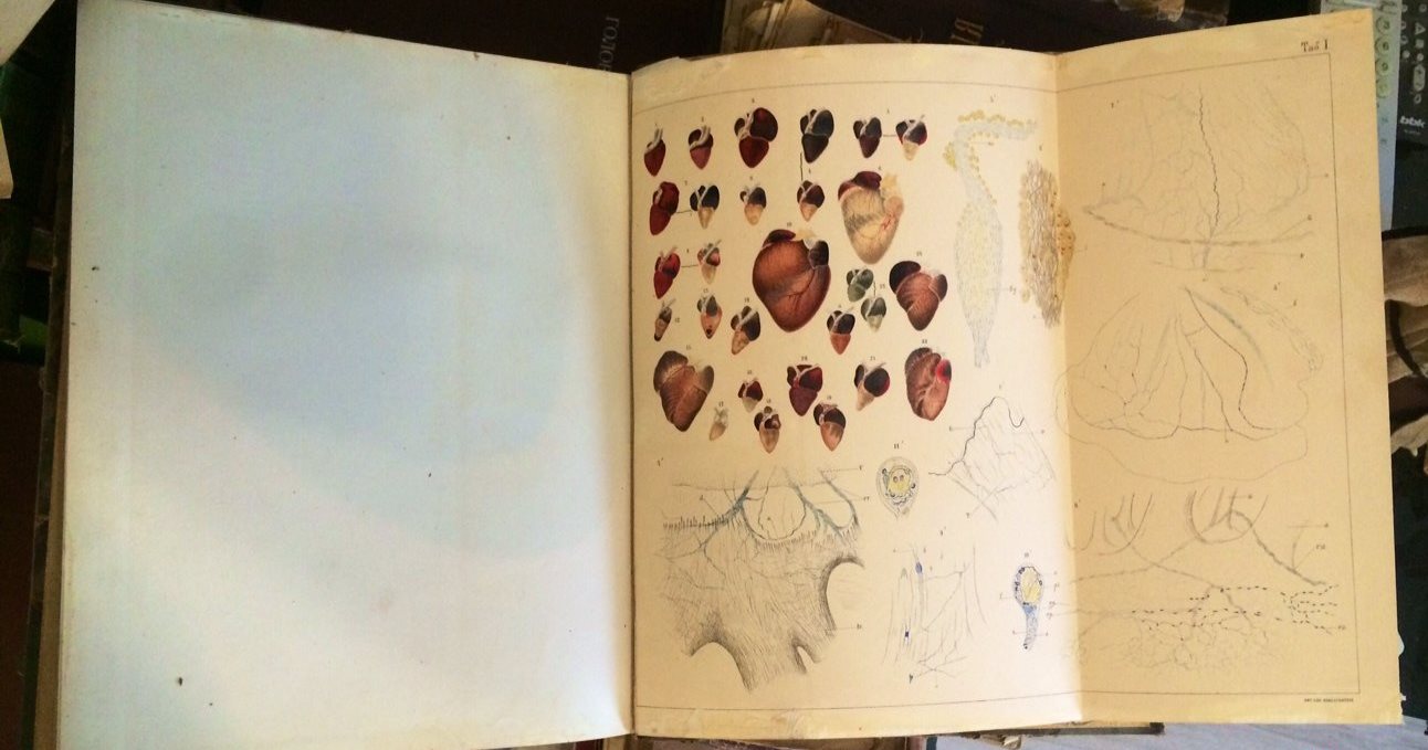 КАРДИОЛОГИЯ. 1895 год. Книга не просто большеформатная а реально большая и тяжелая. Огромное количество иллюстраций и рисунков. Книга в очень хорошей сохранности. Профессиональная книга о сердце.