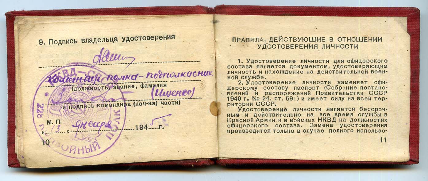 Специальные удостоверения личности (УЛ) стандартного "смершевского" образца изготавливались только в НКО СССР. Органы К/Р «СМЕРШ» ВМФ и НКВД использовали УЛ старого армейского образца.