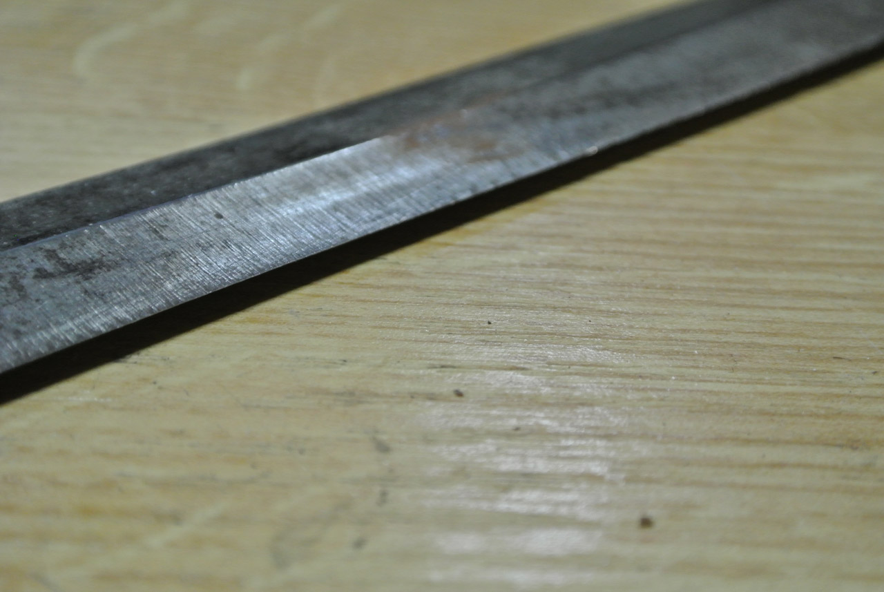 очень острый, бумагу на вермишель режет , как бритва