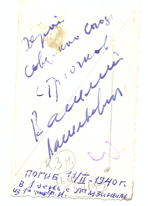 "Герой Советского Союза Стрючков Василий Васильевич - танкист ,погиб 11 февраля 1940 г. " - размеры : 5,4 на 8,7 см.