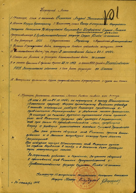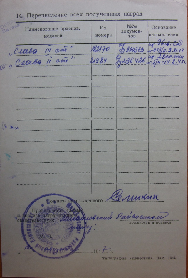Слава-3 № 182170 (Пр. от 02.11.44 г.);
