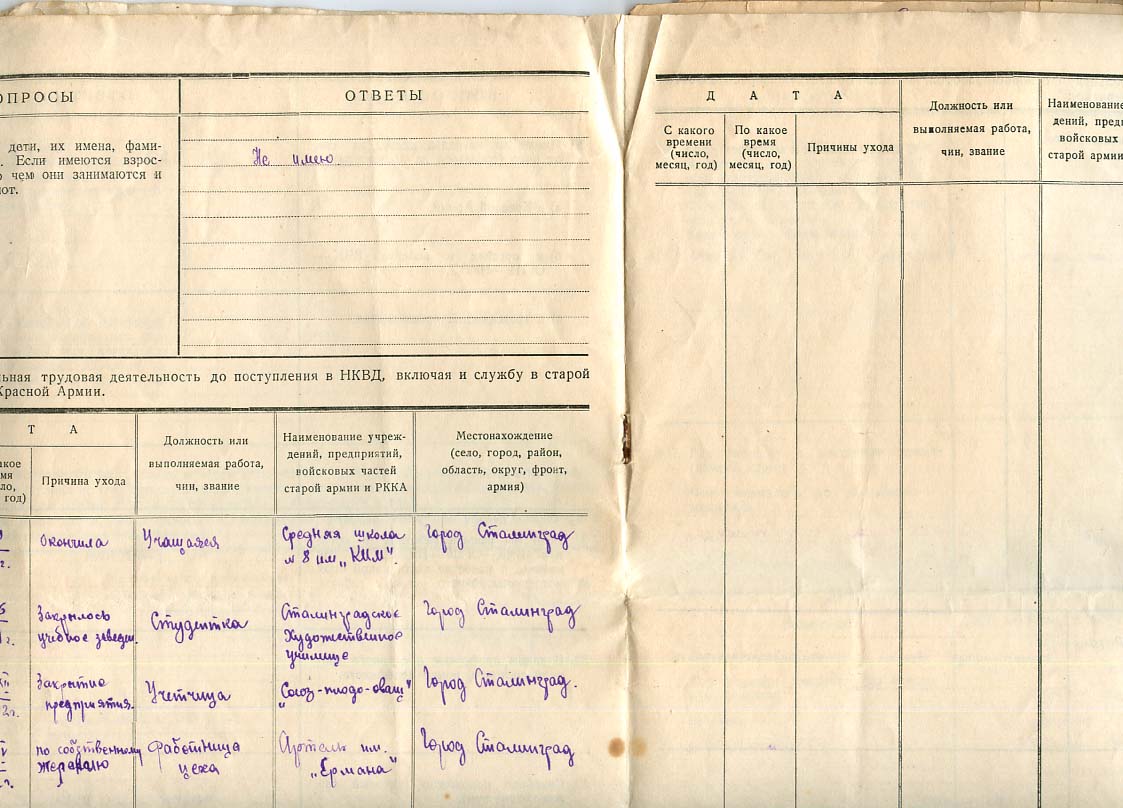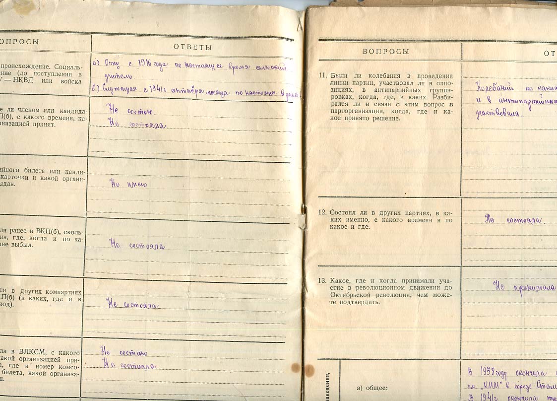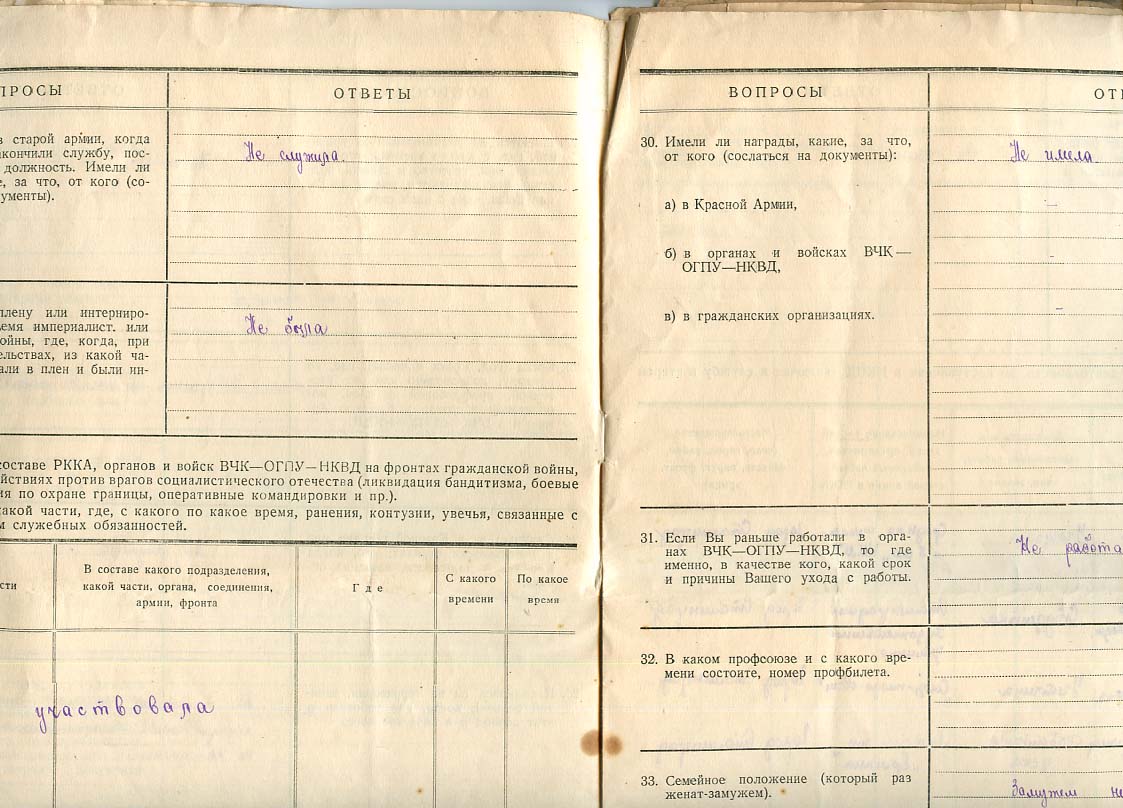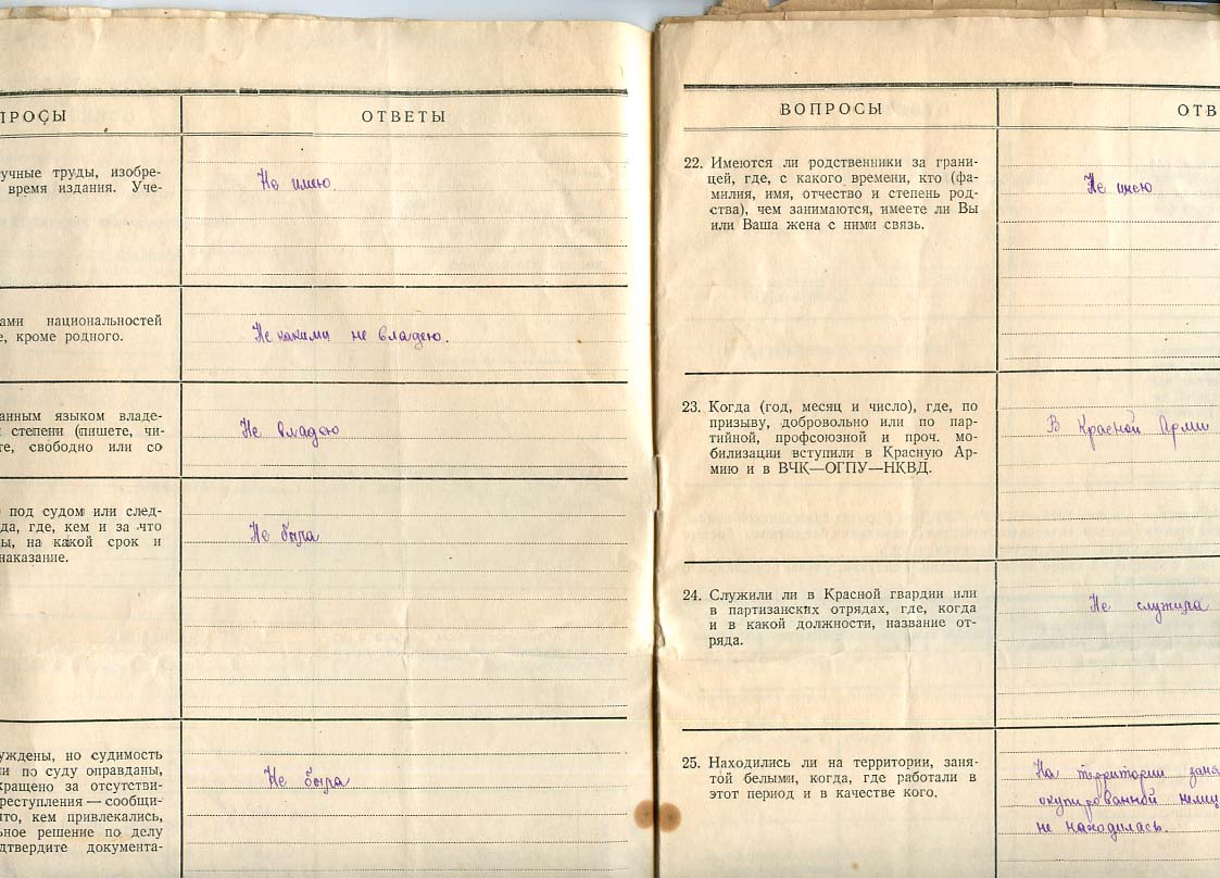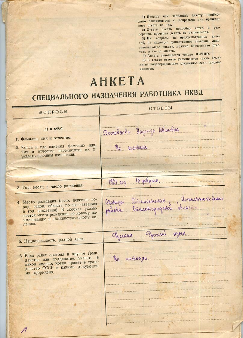 Анкета спецназначения работника НКВД Беспалова Н.И. Всего 8 листов.