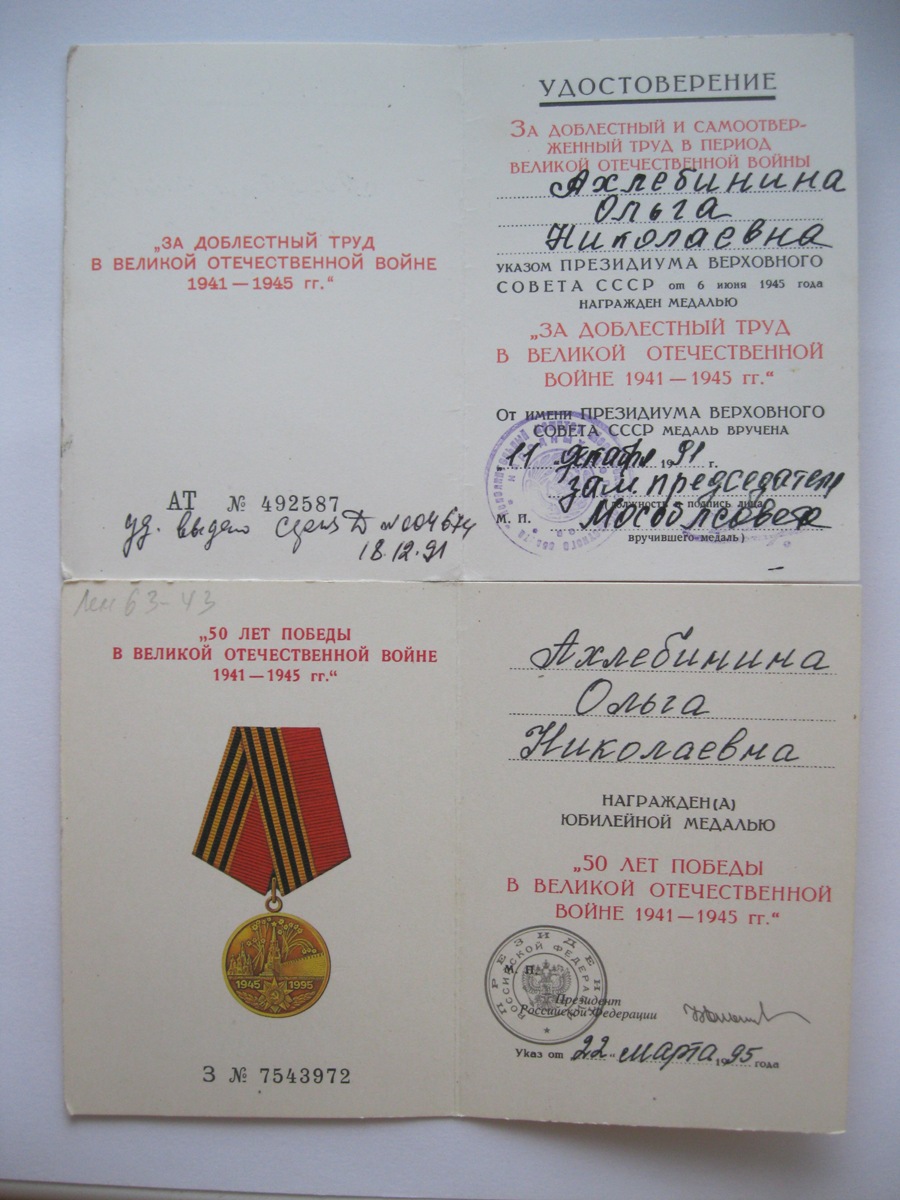 Орденские книжки, удостоверения к медалям, Грамоты, удостоверения личности, извещения, справки и другие документы, литература