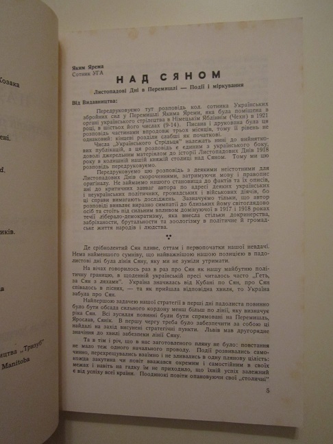 Над Сяном. Матерiяли до iсторii Украiнськоi Галицькoi Армii. У 50-рiччя ii участи у визвольних змаганнях. ТОМ V.