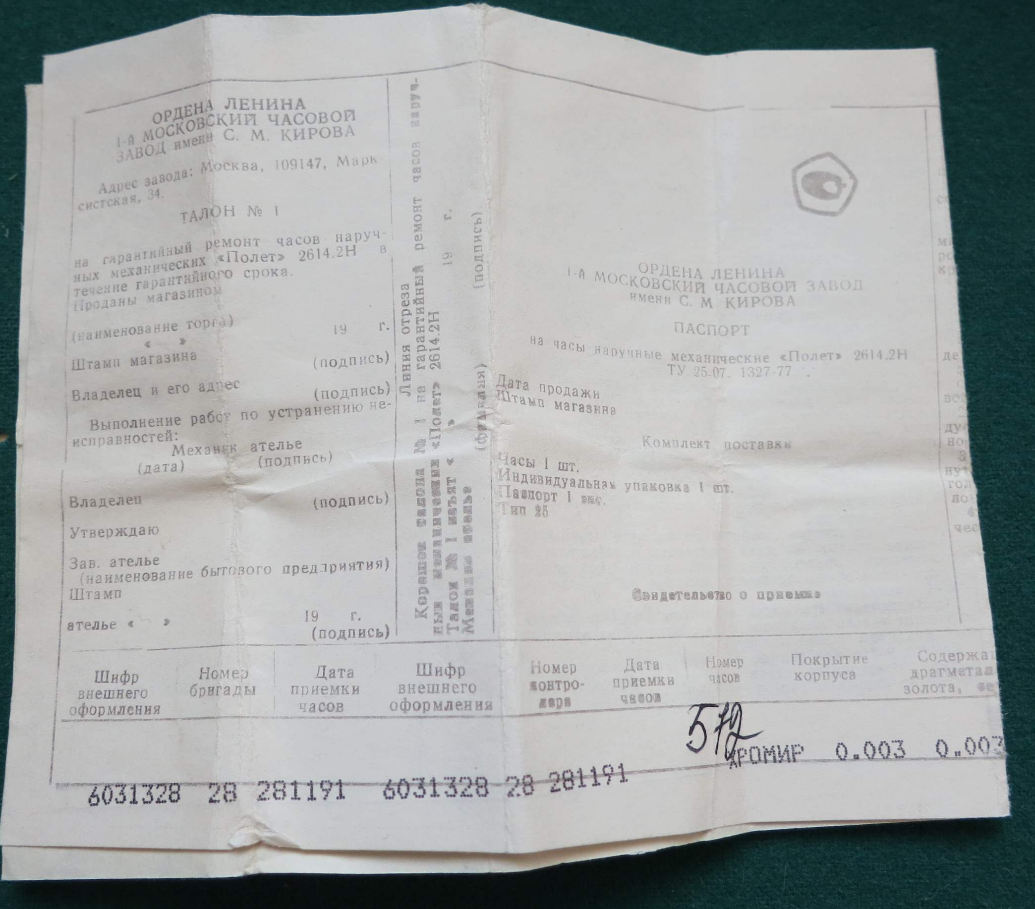 Re: Часы ПОЛЕТ новые, полный комплект, СССР nikolas1957 - 24 май 2014 09:29.06 × Мини профиль пользователя nikolas1957 Сообщения: 1926 Зарегистрирован: 07 сен 2010 15:28.53 Откуда: Восточная Сибирь Статус: Не в сети - 24 май 2014 09:29.06 #4769903 ЗАКРЫТО! За работу Почты России не отвечаю!