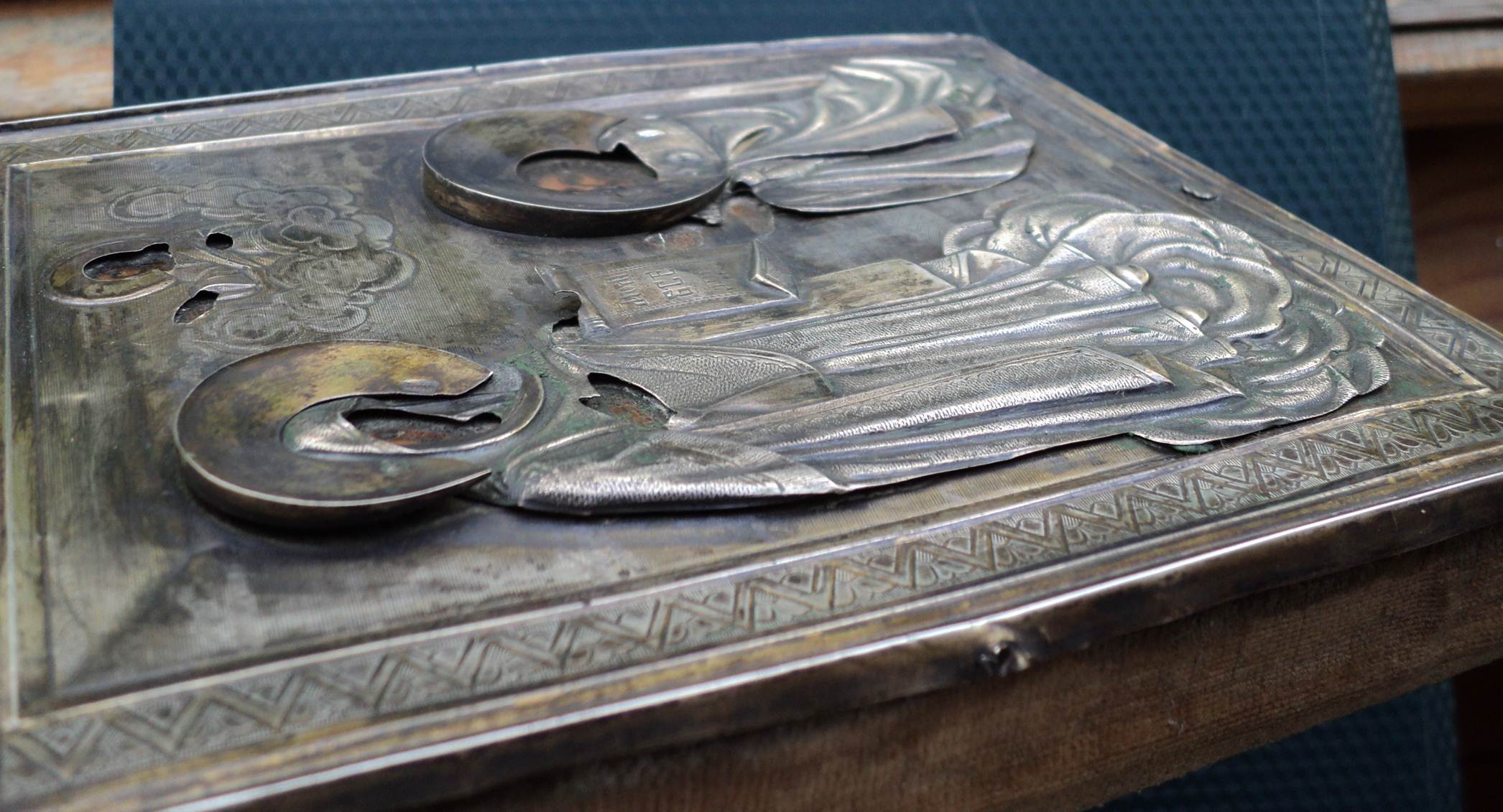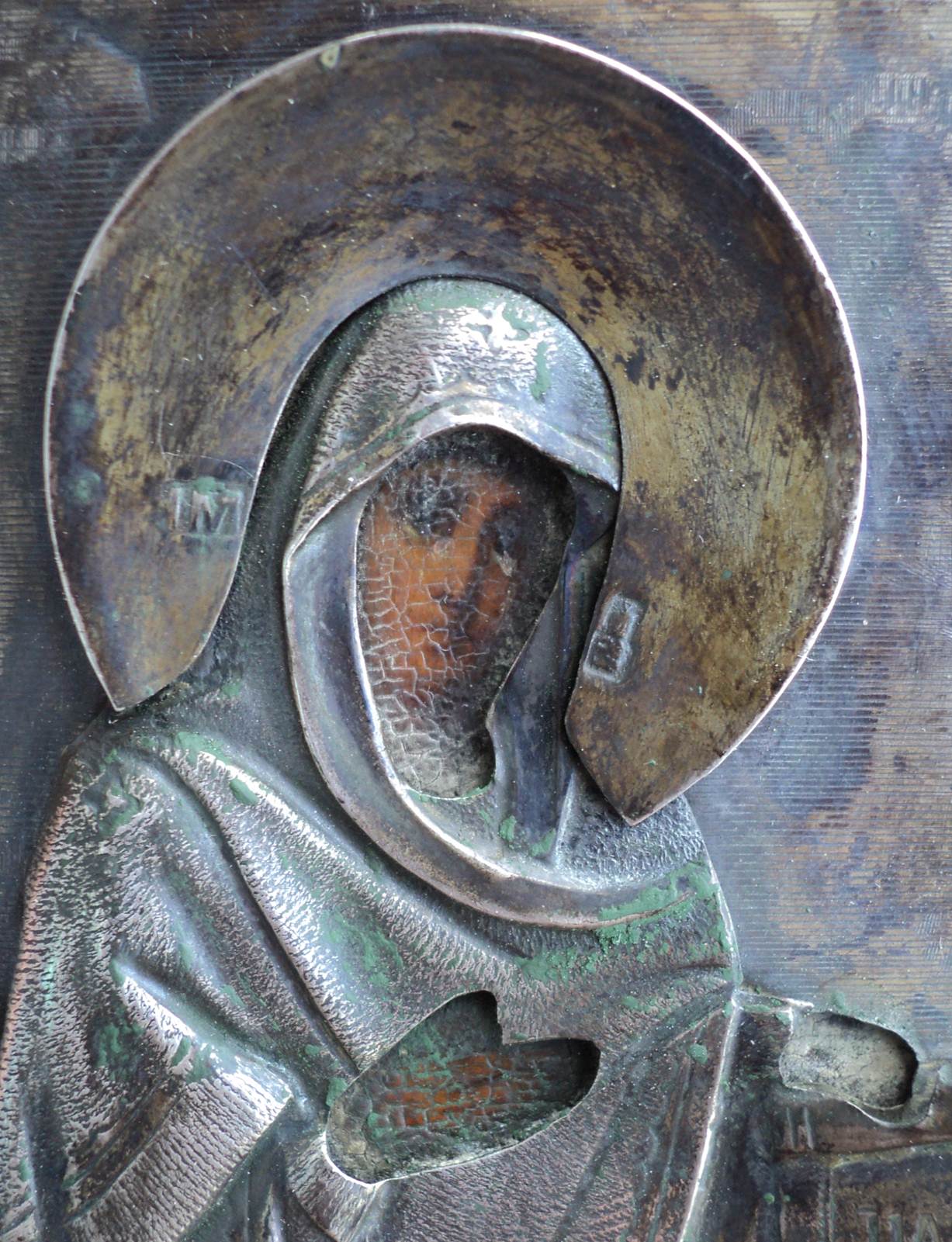 Одежды и венцы накладные, клейма на венцах, одеждах и окладе одинаковые.