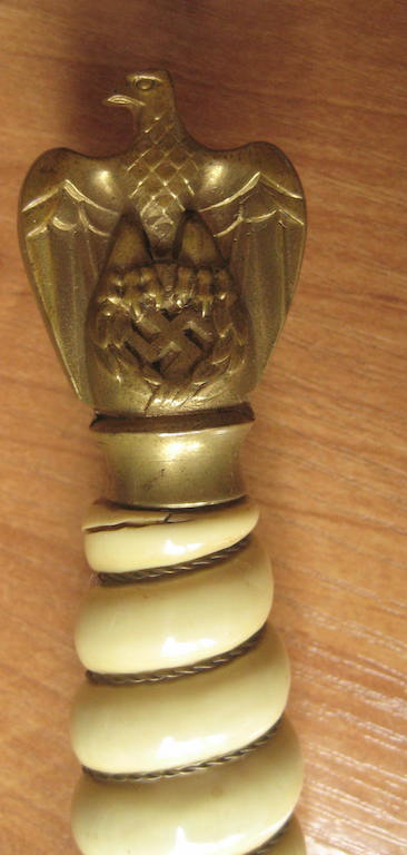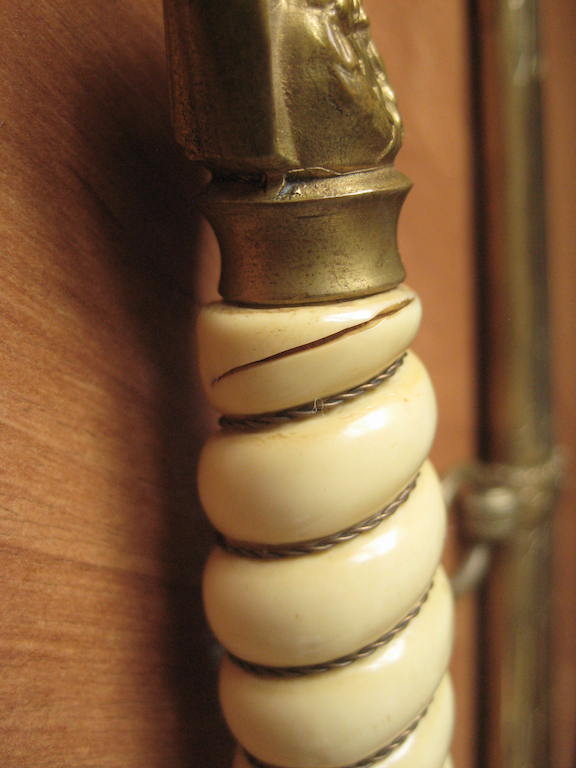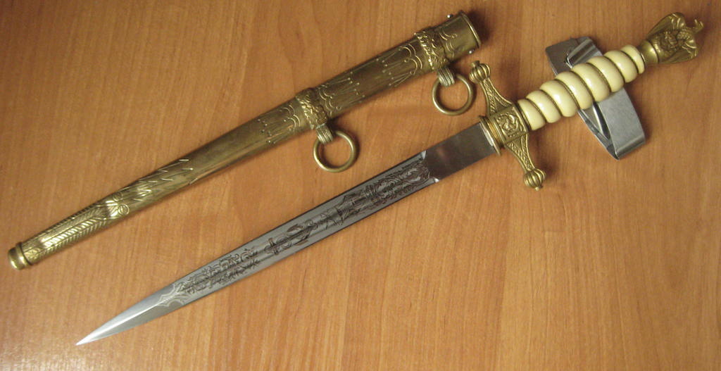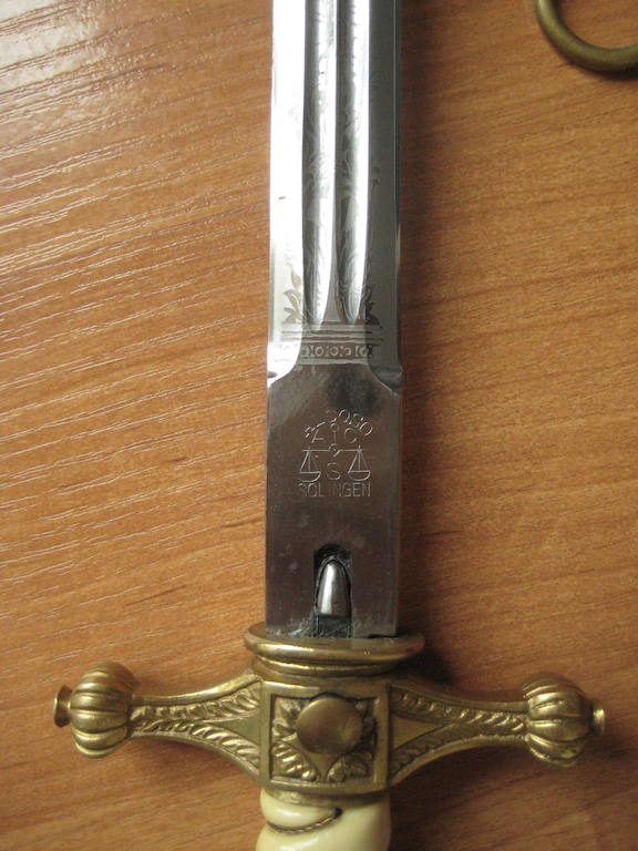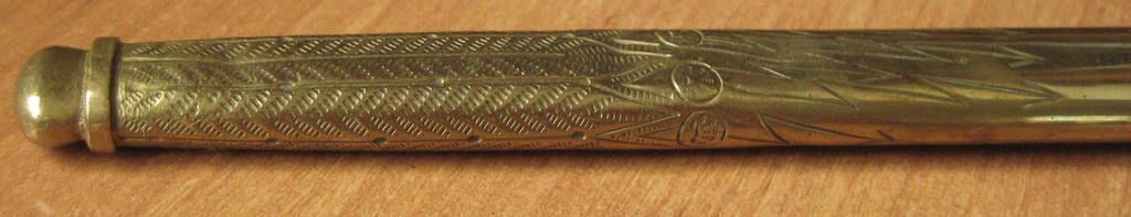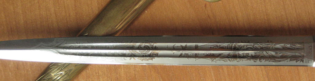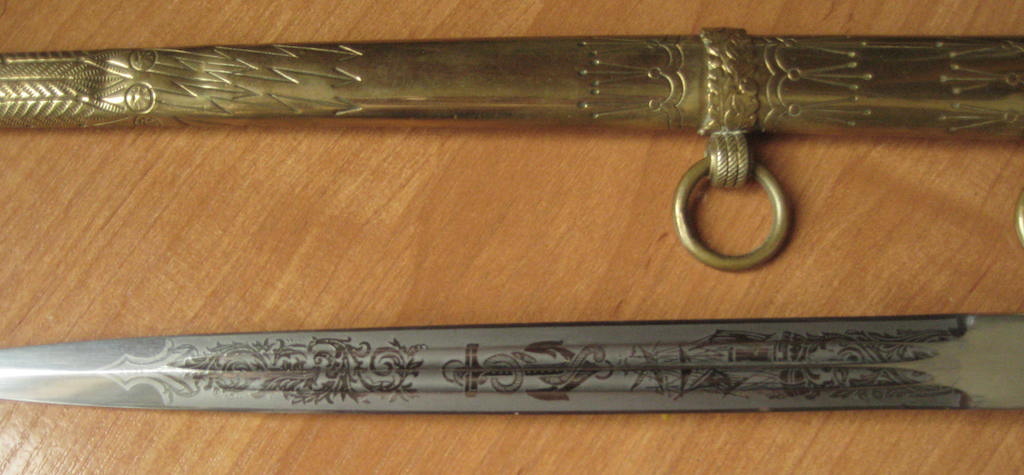 Предложу, клинок с травлением "парусник" состояние клинка великолепное. Ножны в позолоте практический полностью, несколько вмятин внизу ни как не влиют. Рукоять дерево в целлюлозе, на верзнем витке, трещина без утрат. Орел рельефный, и очень злой. 50 000 рублей.