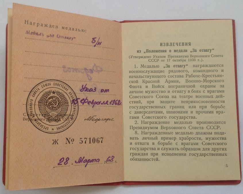 Re: Документ к медали За Отвагу Б/Н fin82 - 03 июл 2014 10:32.16 × Мини профиль пользователя fin82 Сообщения: 9485 Зарегистрирован: 20 янв 2011 12:29.23 Статус: Не в сети - 03 июл 2014 10:32.16 #4813946 11 В любых гарнизонах, во всех округах...