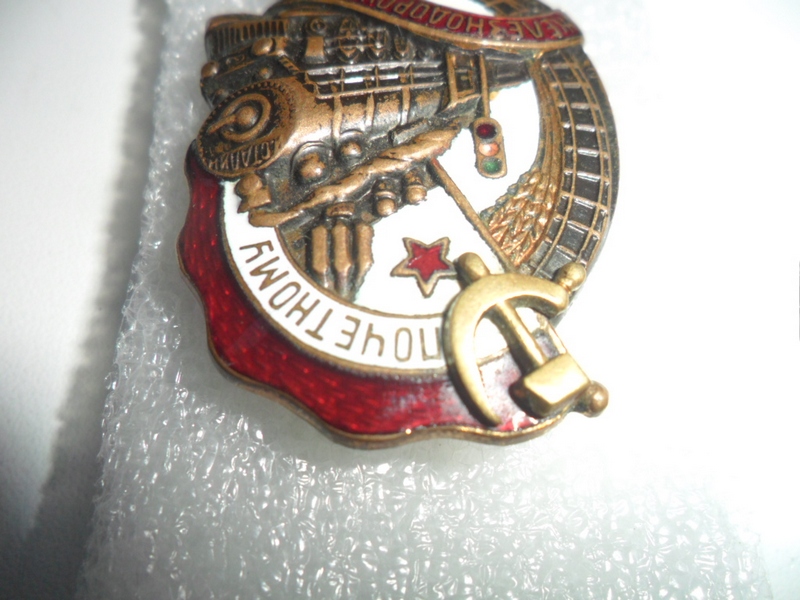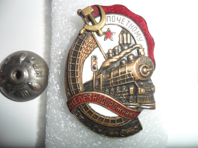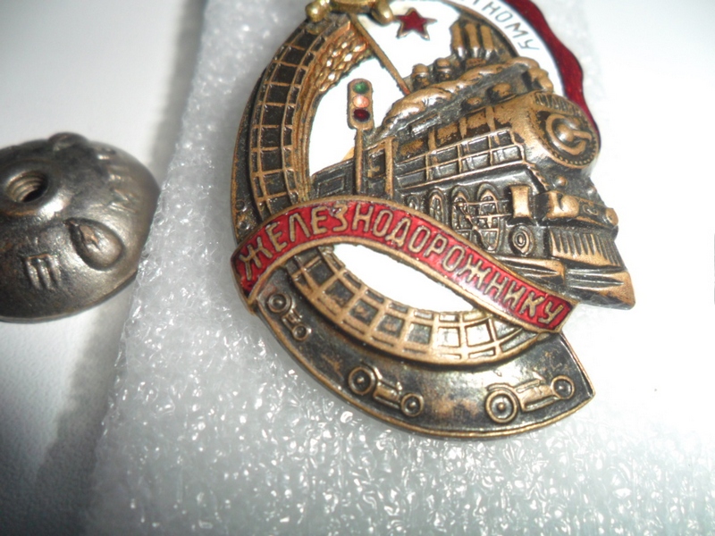 По эмалям следующие замечания: красная эмаль вверху - два пластинчатых скола (над молотком и в середине знака), белая эмаль под нижней лентой - нитевидная трещина, гайка, похоже была подобрана - немного запилена резьба, над буквой "З" - либо недолив эмали, либо скол - все это увидел в лупу. Общий вид знака хороший. Предложите по РФ.