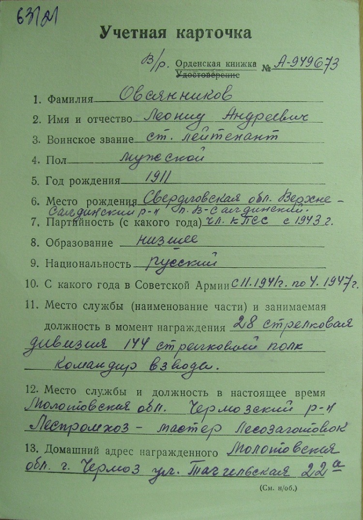 Красного Знамени, Суворова, Кутузова, Богдана Хмельницкого, Александра Невского, Ушакова, Нахимова, Отечественной Войны, Красной Звезды, Славы, За Службу Родине в ВС СССР