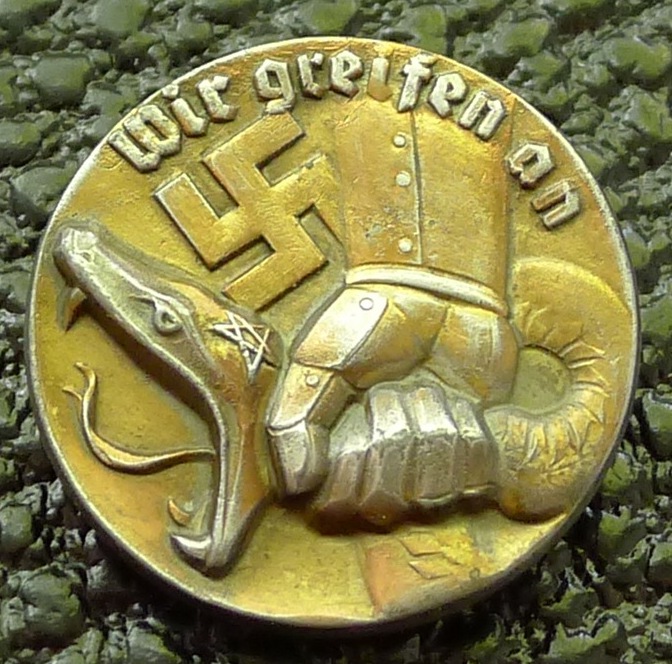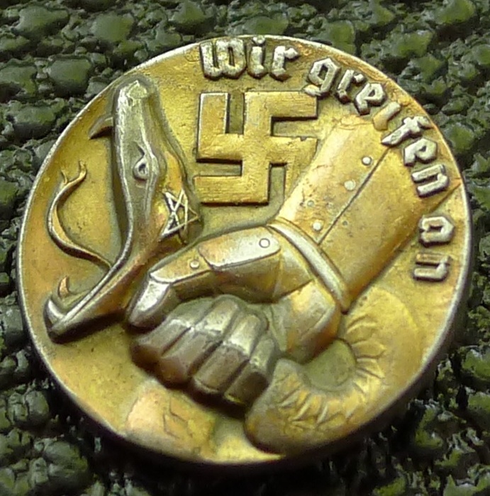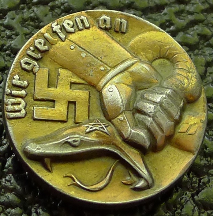 "Мы атакуем". Пропагандистский значок в борьбе с коммунизмом.