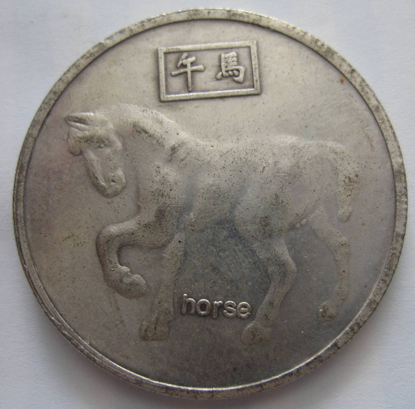 На Янской стороне монета имеет изображение-амулет одного из 12-ти животных Китайского календаря — Лошади.
