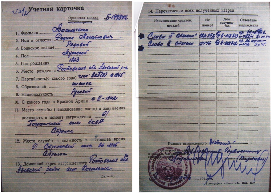 Ищу награждения за Ржев, операцию "Марс", Восточную Пруссию.