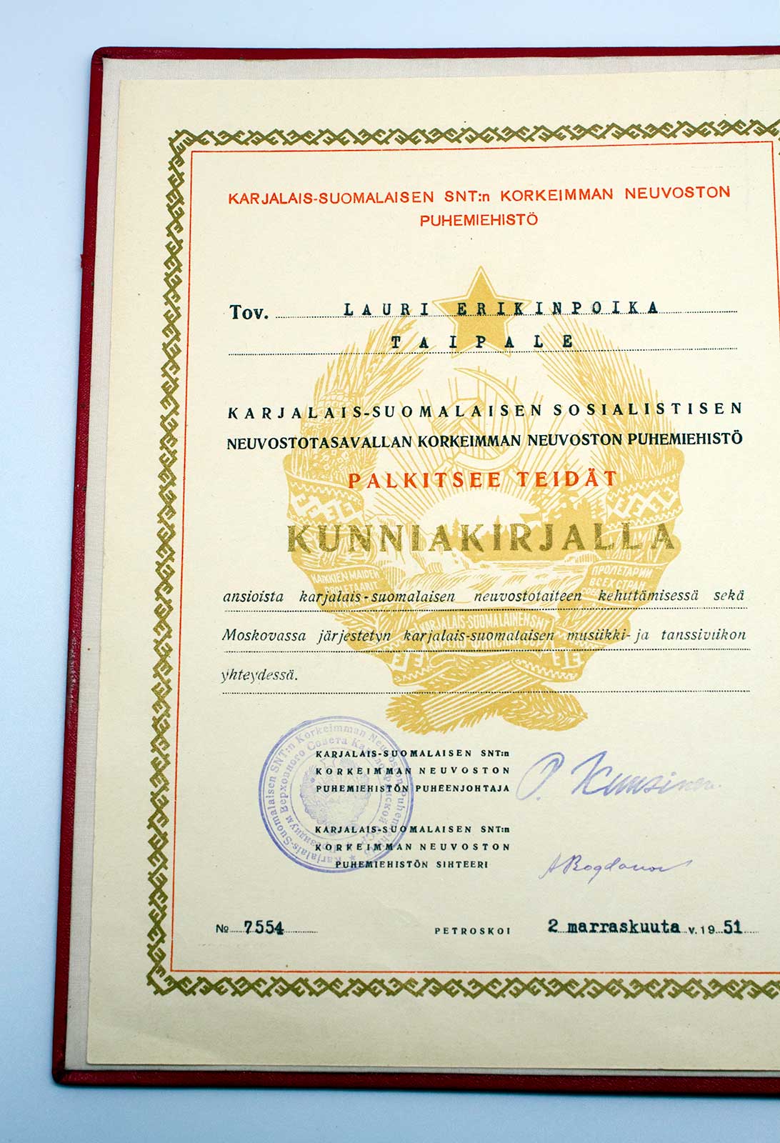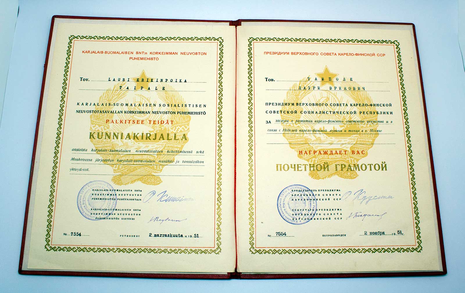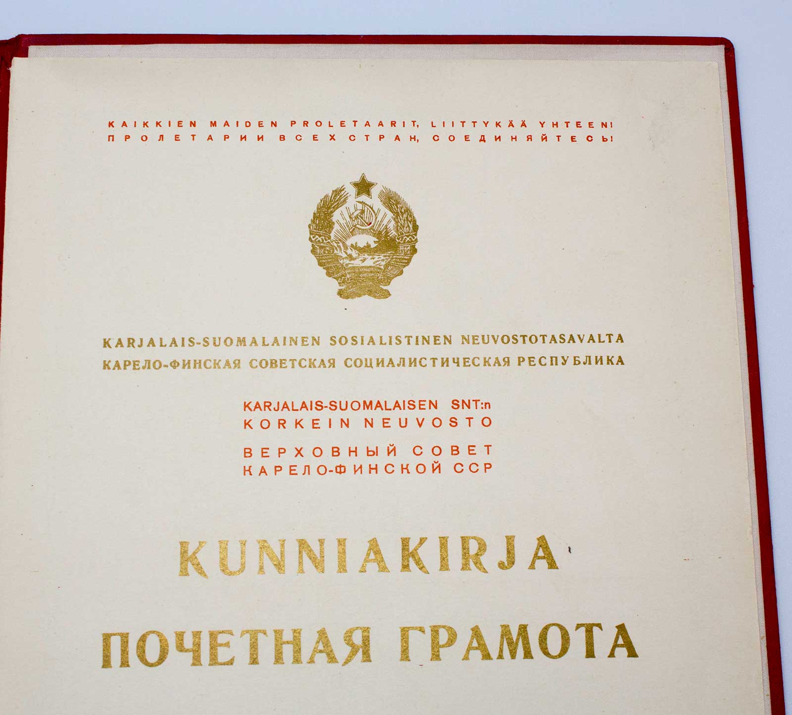 Грамота ПВС Карело-Финской ССР!!! Редчайшая!!! В ЛЮКСЕ!