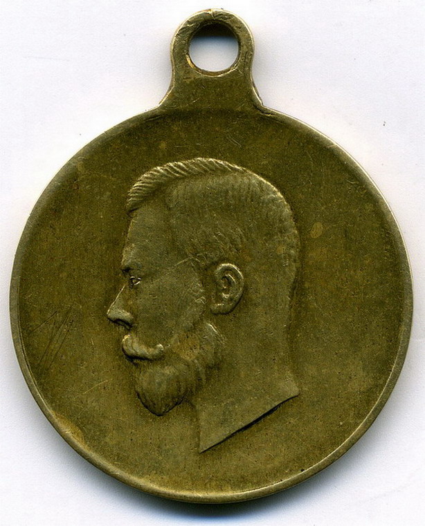 Бронза, 28 мм. Медаль была покрыта лаком, поэтому есть пятна на поле медали.