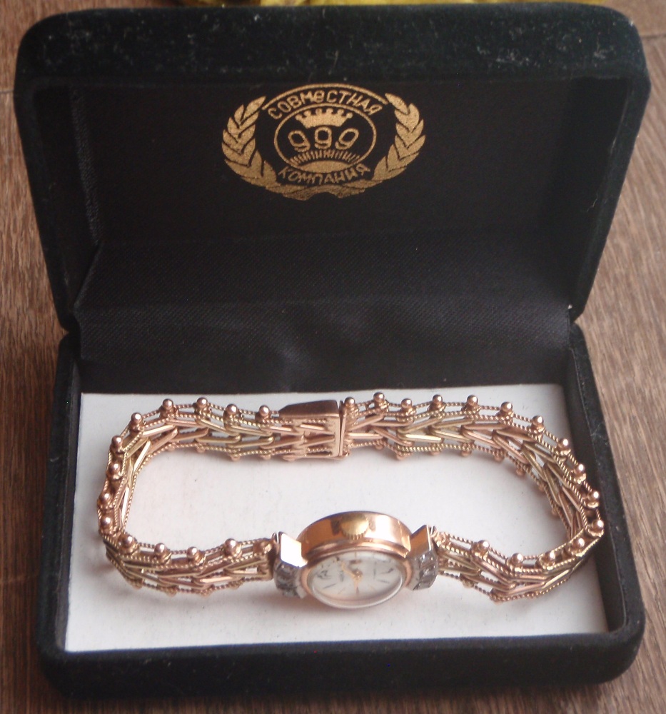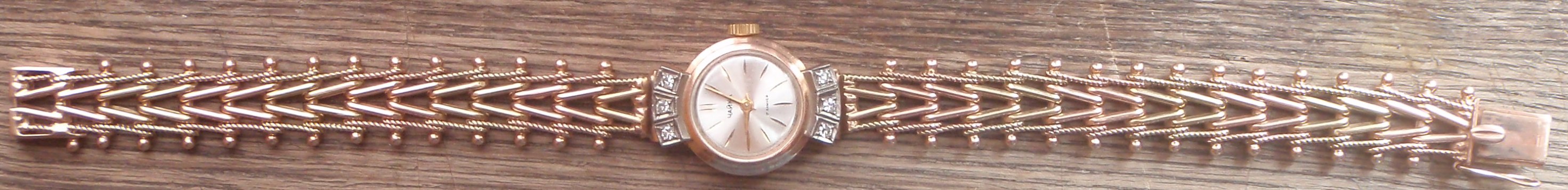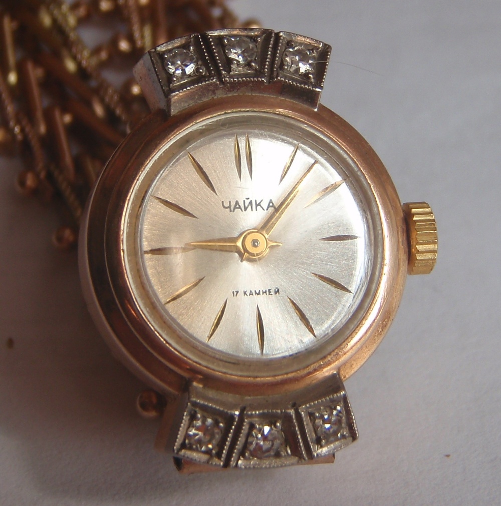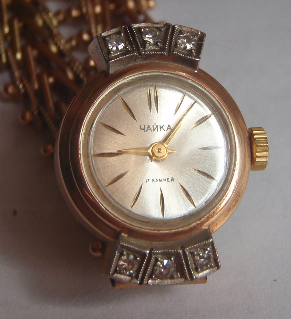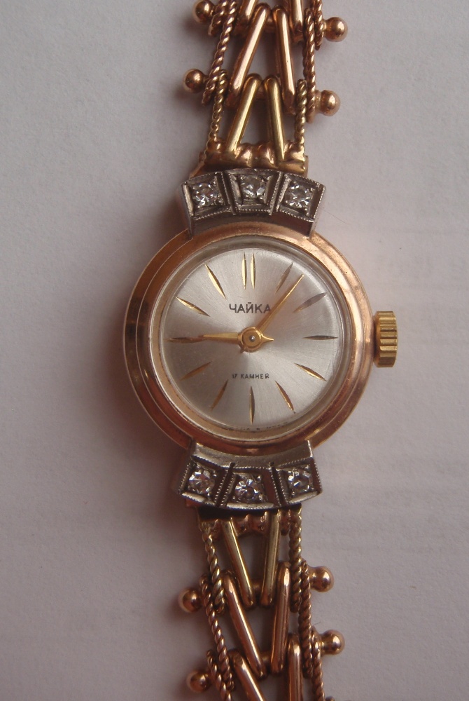 Золотые часы Чайка 583 пробы с бриллиантами.