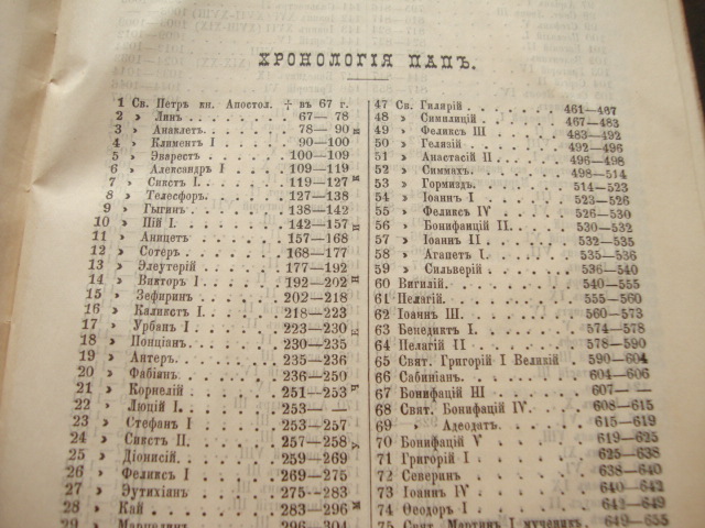 Хронология ПАП с 67 года по 1892 год.