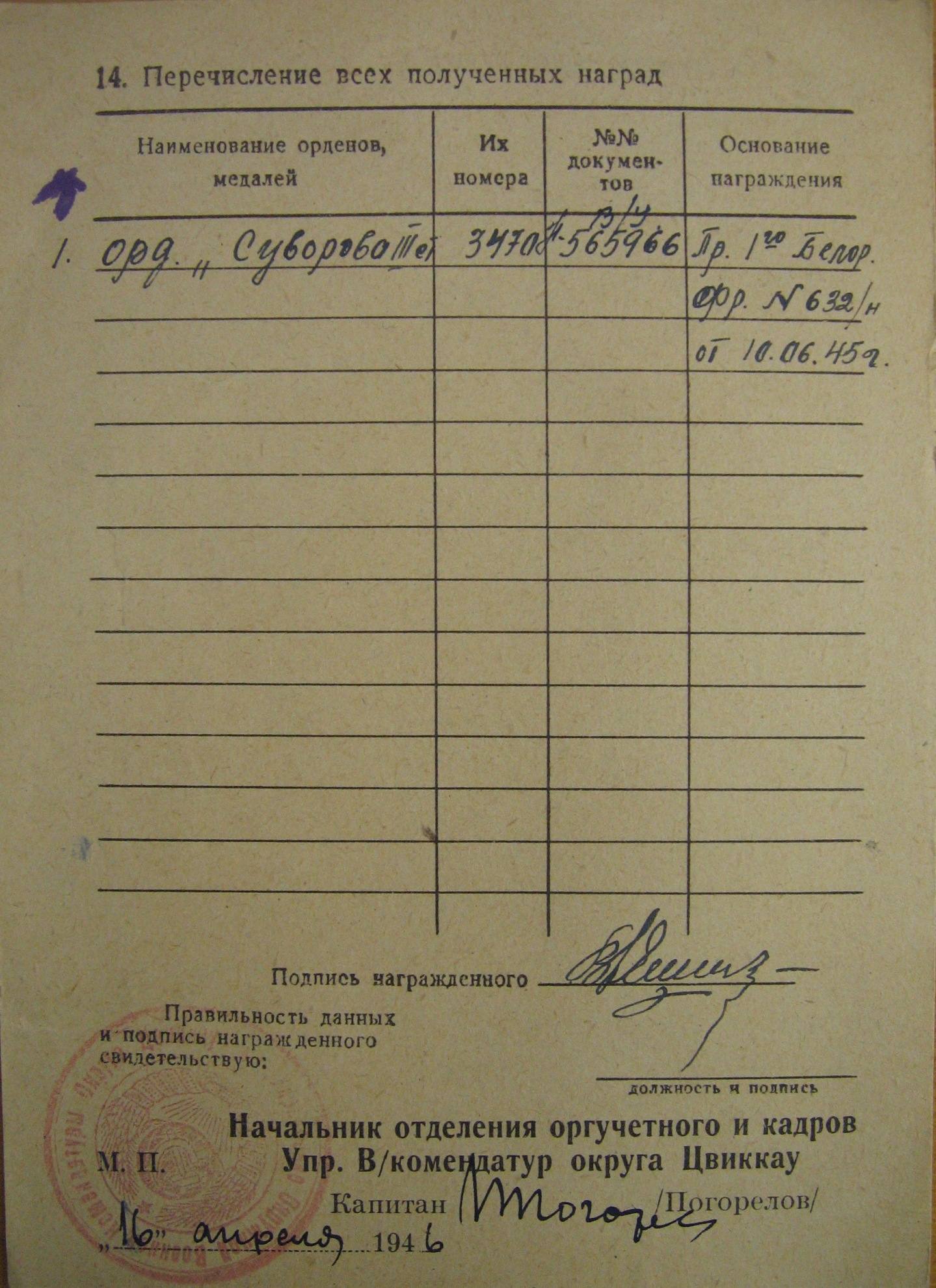 Ищу награды деда: Слава 3-№293982, Отвага-№1941926