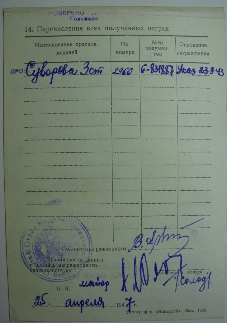 Если в орденской записан один Суворов это не значит что кавалер не имеет других наград. Учите матчасть, потом спрашивайте.