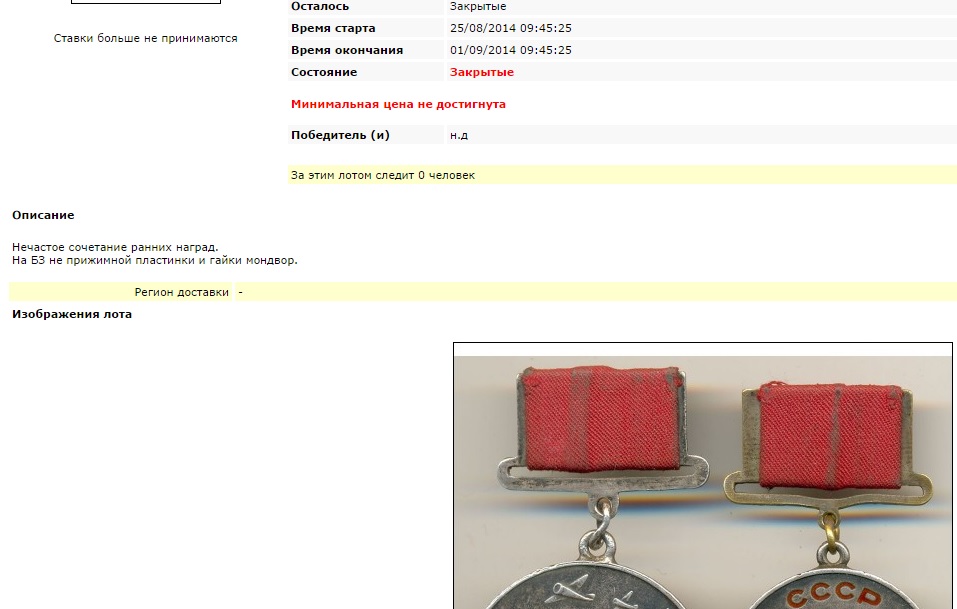 Я на аукционе продавал лот из БЗ и Отваги. Скрин прицепил. Описал состояние и комплектность.