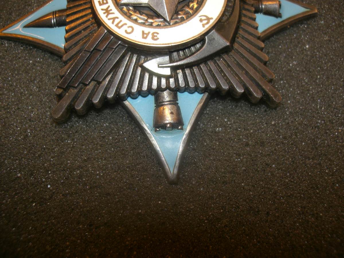 По самому знаку - стандартный скольчик под левой ракетой, есть микроцарапки.