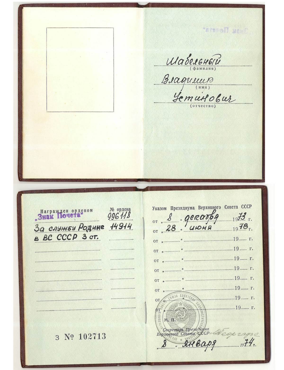 По указу в орденской - указ за Эфиопию. По легенде человек был в командировке именно там.