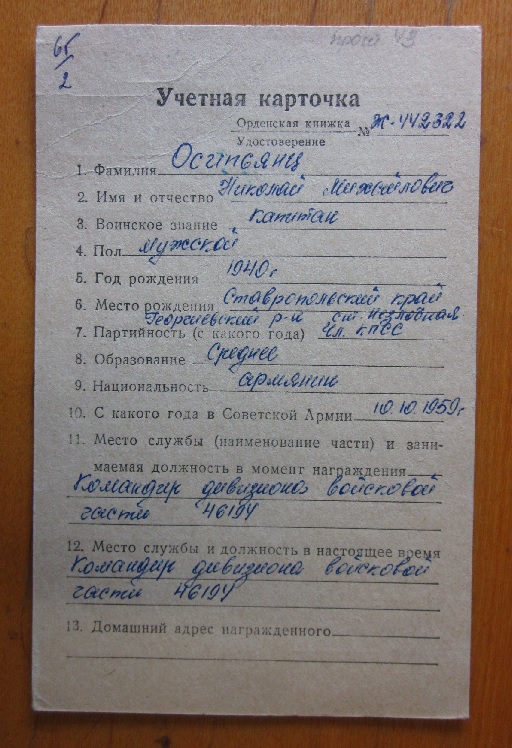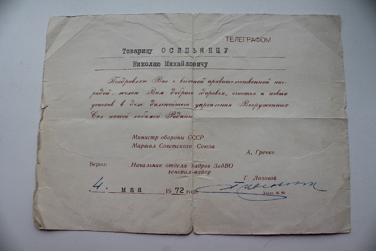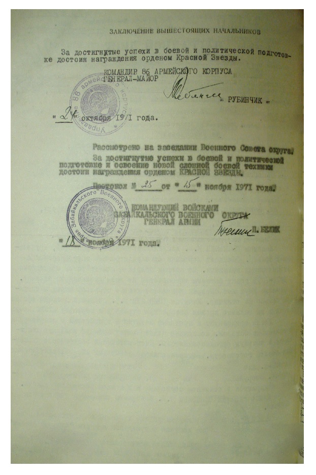 Красного Знамени, Суворова, Кутузова, Богдана Хмельницкого, Александра Невского, Ушакова, Нахимова, Отечественной Войны, Красной Звезды, Славы, За Службу Родине в ВС СССР
