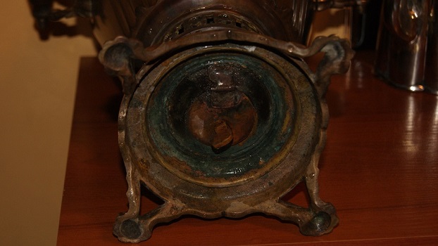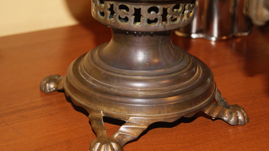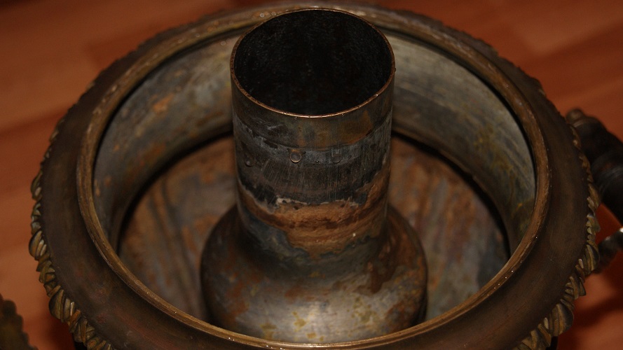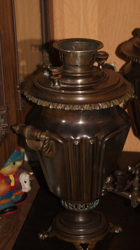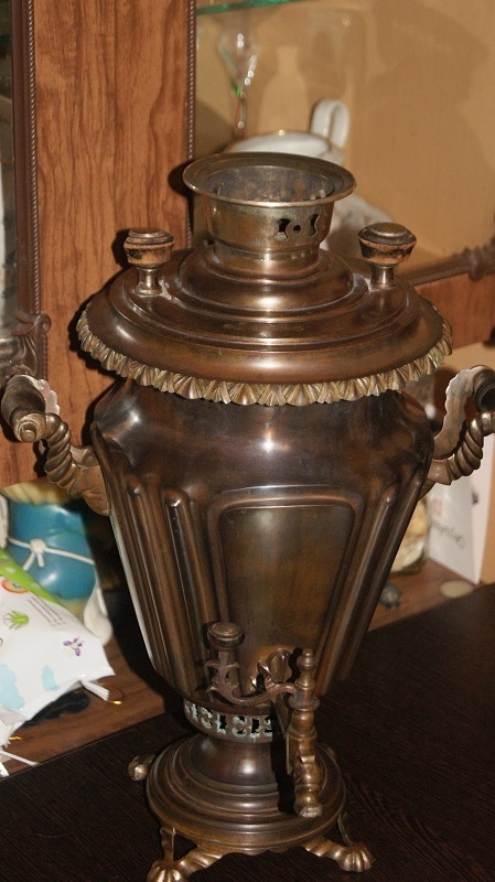 Самовар обьемом 4 литра.Не разбирался.Не течет и не капает.Без паек. Имеются остатки накипи.Комфорка и заглушка отсутствуют.крышка зольника на месте.Дерево все родное,на одной прихватке половино деревяшки.Есть совсем небольшая замятость ручек,разбирать из за такого самовар не стал.Будут вопросы -спрашиваем.МПЦ 8 тыс руб.условия после прохождения МПЦ.