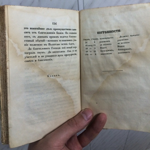 В первой части(год издания не знаю так как первая страница отсутствует) 154 пронумерованные страницы+непронумерованные страницы. Все листы текста целы кроме одной (страница 21-22)