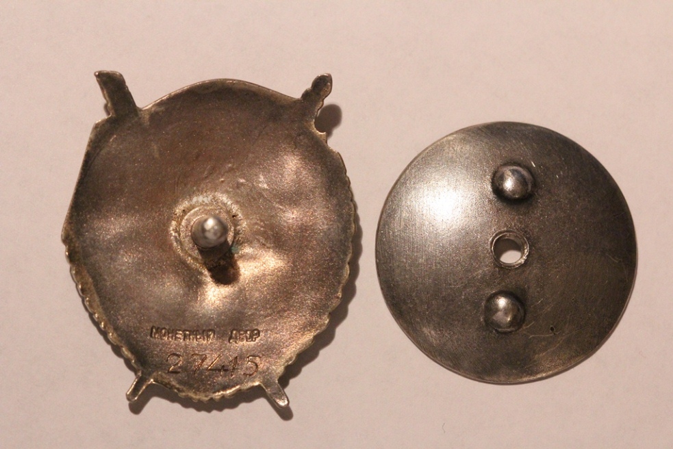 На эмали знамени , правого луча звезды и в правой части ленты - есть чешуйки,