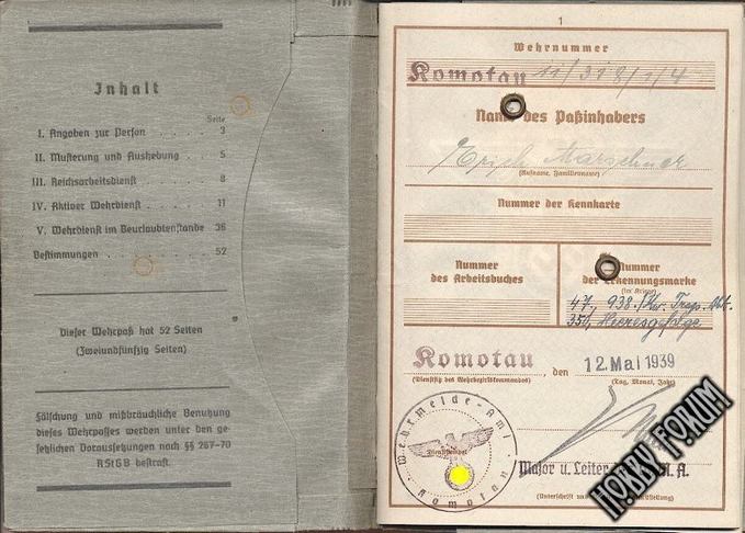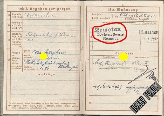 #25928 - Военный билет Комотау (Хомутов), Имперская область Судеты - 30 EUR (~1590 РУБ)