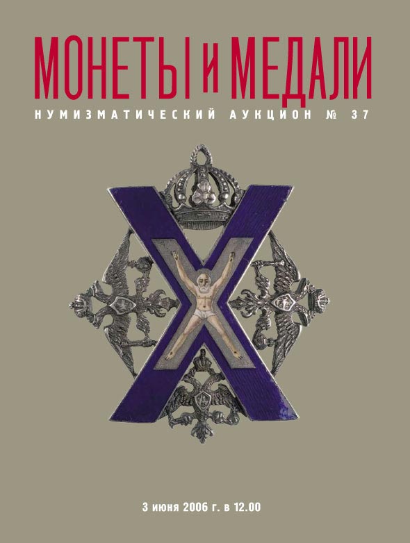 Каталог нумизматического аукциона № 37 от 3 июня 2006 года, "Награды России", твердая обложка, цветные иллюстрации, 200 лотов, 152 страницы. Москва 2006 г.