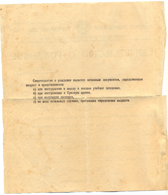 Свидетельство о рождении,