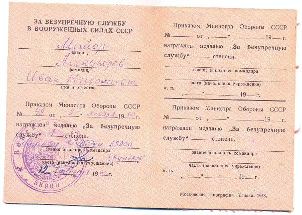 БКЗ № 246032 + КЗ № 3435642 +ОВ -2 ст. № 383096 + медали : ЗПГ+20 лет Безупречной службы ВС СССР+ БЗ № 5611421 +БЗ б/номера.