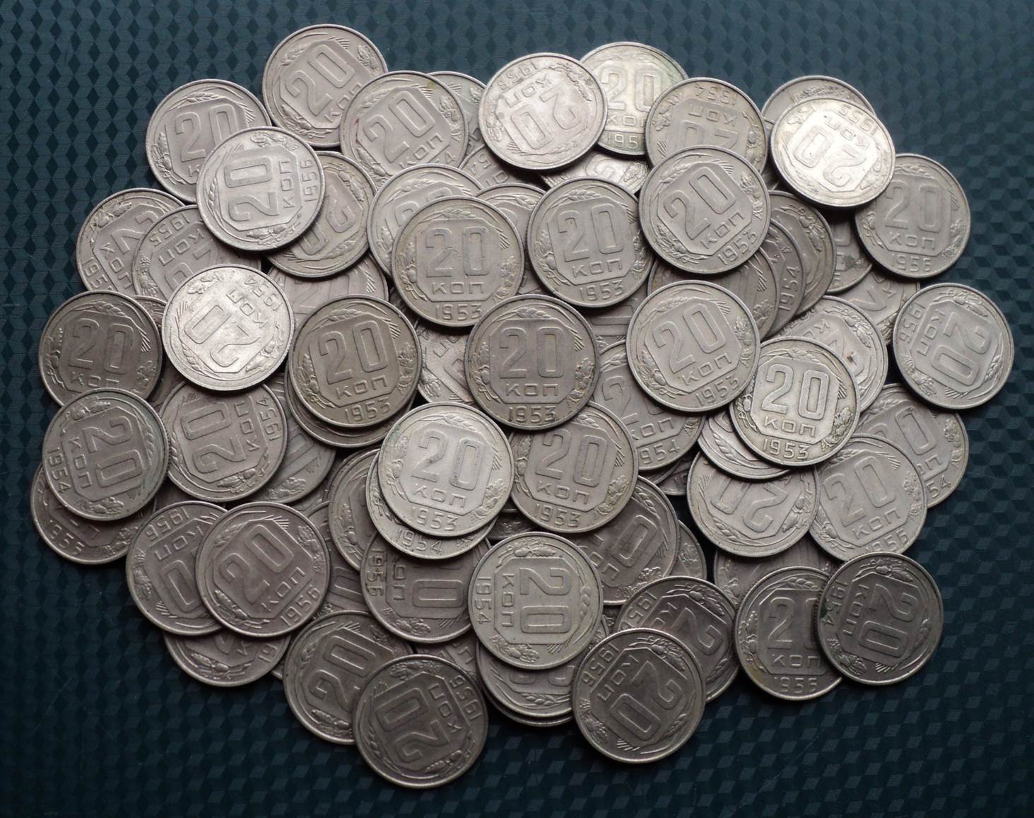 Сто монет 20 коп. 1950 тых. гг.