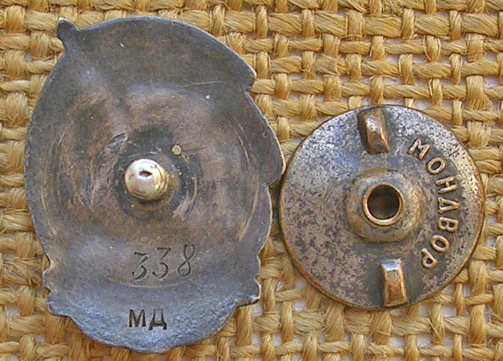На эмали есть местами потёртость и чешуйка в нижнем углу знамени.