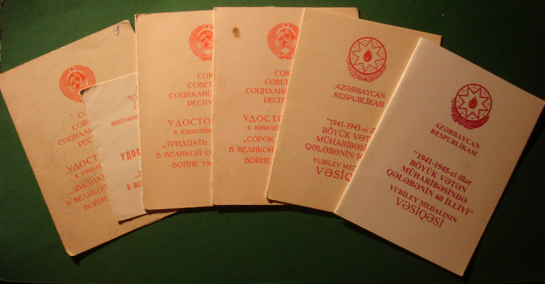 Документы на медали и знак 20,25,30,40,50 и 60 лет Победы на одного кавалера.